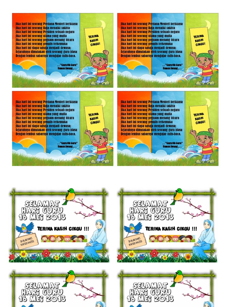 Tempahan untuk rekaan di atas boleh dibuat. Bagian yang berfungsi menunjukkan kapan buku tersebut dibuat dan tahun terbitnya adalah. Ada juga siswa memberi bunga. Mereka memberikan berbagai macam bekal ilmu pengetahuan. Hari spesial untuk guru ini bertepatan dengan hari pgri yaitu persatuan guru republik indonesia. Kata orang, guru ibarat lilin yang membakar diri. Kredit untuk tuannya,terima kasih bebanyak yang ini ummi buat. 20 batang untuk guru perempuan. Buku yang ditulis oleh penulis kesukaan gurumu bisa dijadikan kado hadiah daripada sekadar ucapan selamat hari guru. Sebarang pertanyaan atau ingin membeli sila sms nama penuh dan alamat anda ke: 0%0% found this document useful, mark this document as useful. Mari mewarna gambar selamat hari guru peringkat sekolah ini ialah hasil himpunan yang pihak kami cuba kumpulkan untuk anda semua. Savesave penanda buku hari guru.pptx for later.