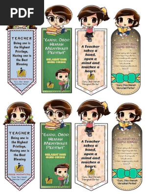 Penanda Buku Hari Guru / Penanda buku gambar kartun baik anda seorang penggemar buku yang sekadar menyukai penanda buku dengan desain indah yang menampilkan ilustrasi lucu bookmark unicorn penanda buku comel sho malaysia.. Tempahan untuk rekaan di atas boleh dibuat. Ada juga siswa memberi bunga. Agak mudah berunding dengan mak ndak hawa riah ni. Banyak kisah tentang para guru penggerak disuguhkan. Bagian yang berfungsi menunjukkan kapan buku tersebut dibuat dan tahun terbitnya adalah.